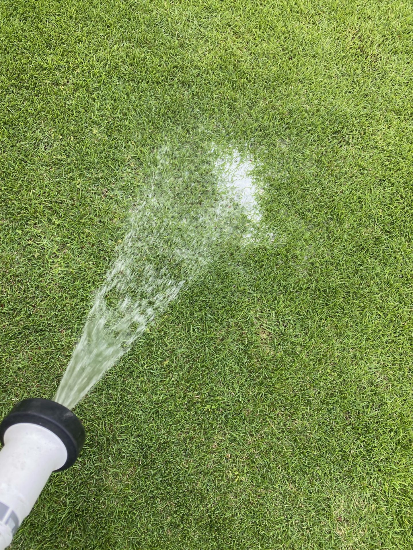 - 芝生に泡が出るくらい強めの水流を地面に当てます。